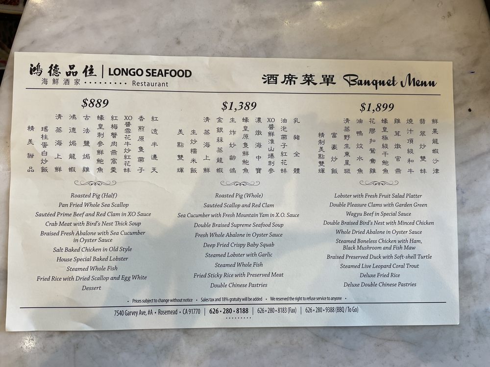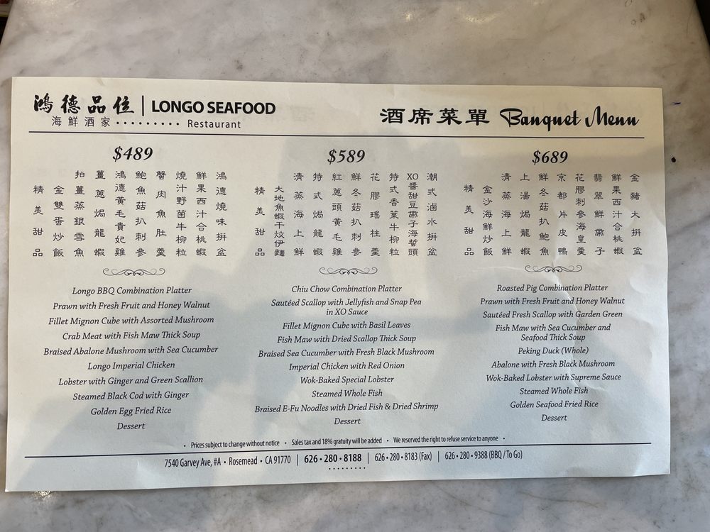 Located in Rosemead, California, Longo Seafood Restaurant offers a delectable array of Cantonese dim sum and seafood dishes. With options for vegans and vegetarians, this restaurant provides a diverse menu suitable for all palates. The inviting decor and efficient service add to the overall dining experience.